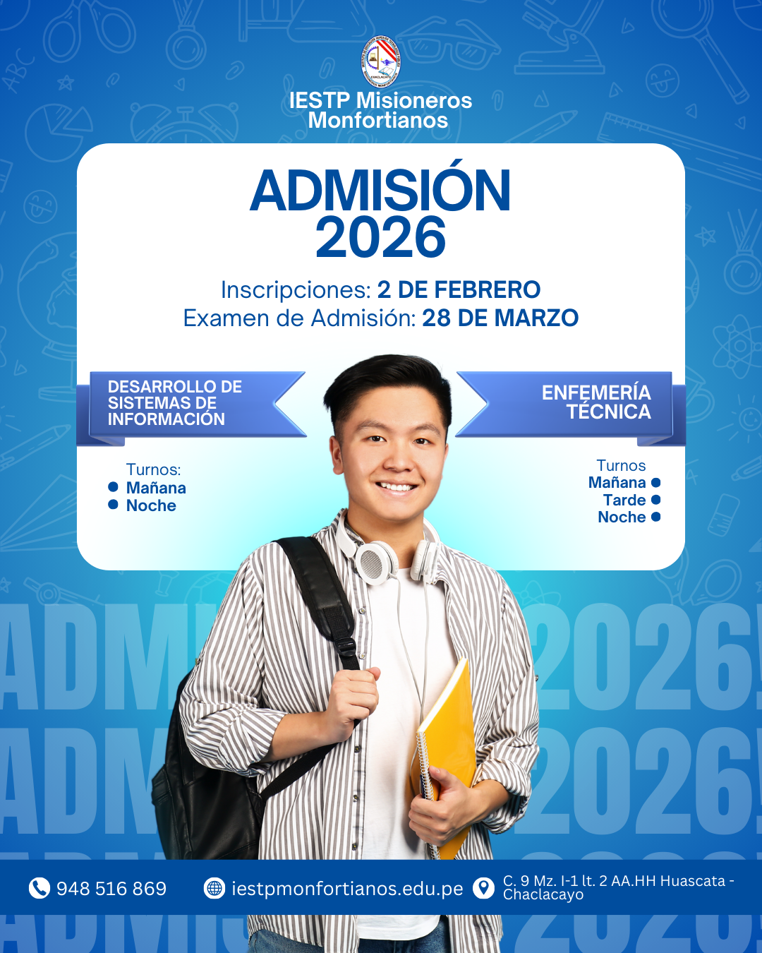 Amo la carrera de Enfermería y el Instituto Misioneros Monfortianos ha sabido brindarme los conocimientos y estrategias para poder desarrollarme profesionalmente, ya que cuentan con aulas modernas, laboratorios y constantes prácticas dirigidas. Los maestros, excelentes y con amplia trayectoria, las docentes de especialidad totalmente entregadas y apasionadas con su carrera lo cual transmiten a sus estudiantes con convicción y amor, factor importante en enfermería, pues lograr transmitir el calor humano con empatía es pieza fundamental en el cuidado de nuestros pacientes.