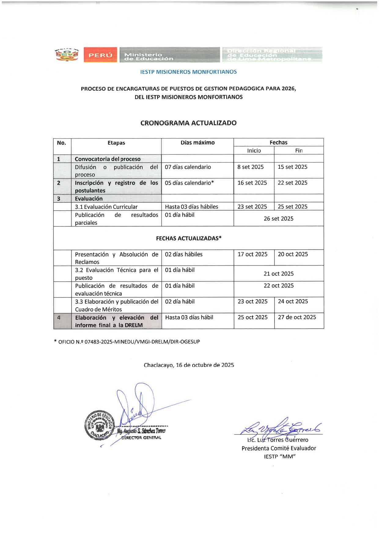 Cronograma Actualizado del Proceso de Encargatura de Puestos de Gestión Pedagógica 2026