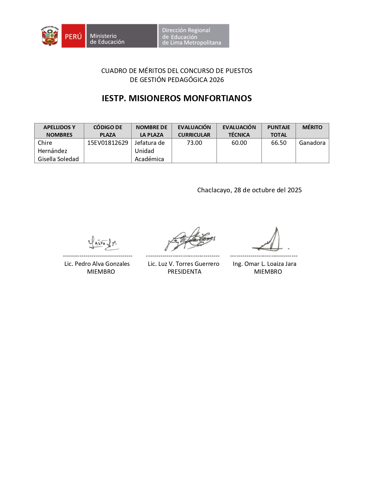 Cuadro de Méritos del Consurso de Puestos de Gestión Pedagógica 2026